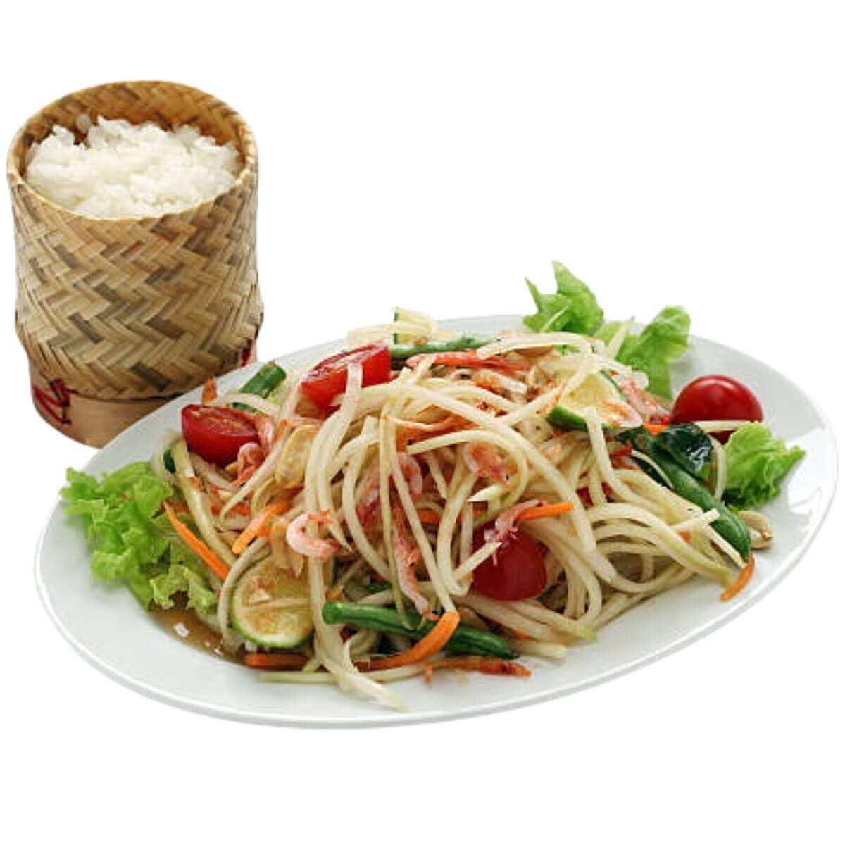 Crisp, refreshing, and slightly spicy โ a classic Thai papaya salad.